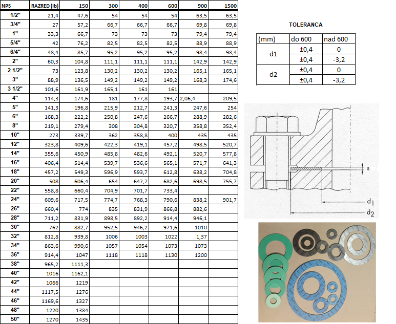 Izdelava tesnil po standardu:EN 1514-1 (DIN 2690) in ASME B 16.21